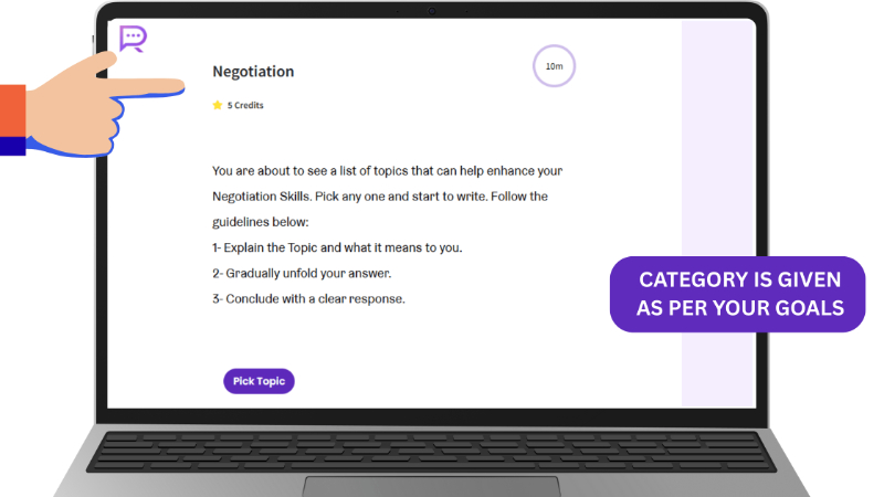 STEP 5 : Topic for your writing exercise get generated as per your writing goals.