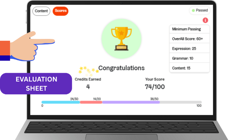 Your report comes with personalized feedback and mini improvement tasks (if you don’t pass). These are based on your weak areas—be it sentence structure, creativity, or coherence.