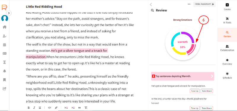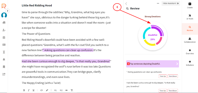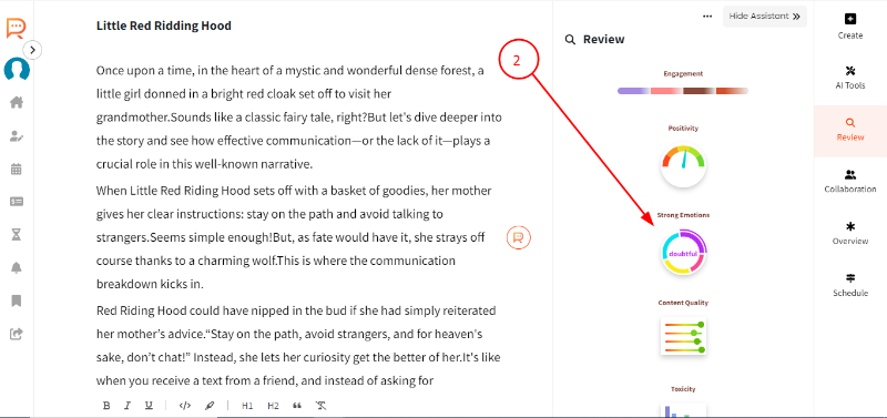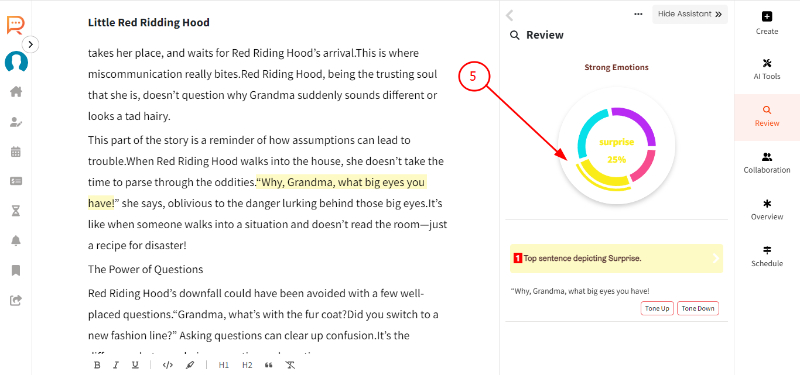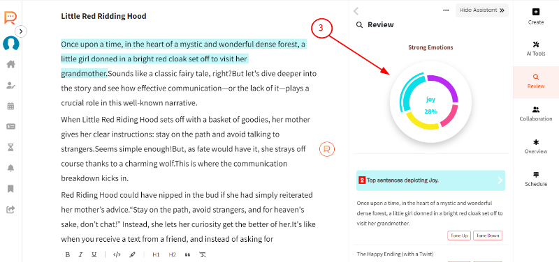 SmartProof’s Emotion Detection feature helps writers understand the emotional tone conveyed through their content. By analyzing the choice of words, sentence structure, and overall writing style.