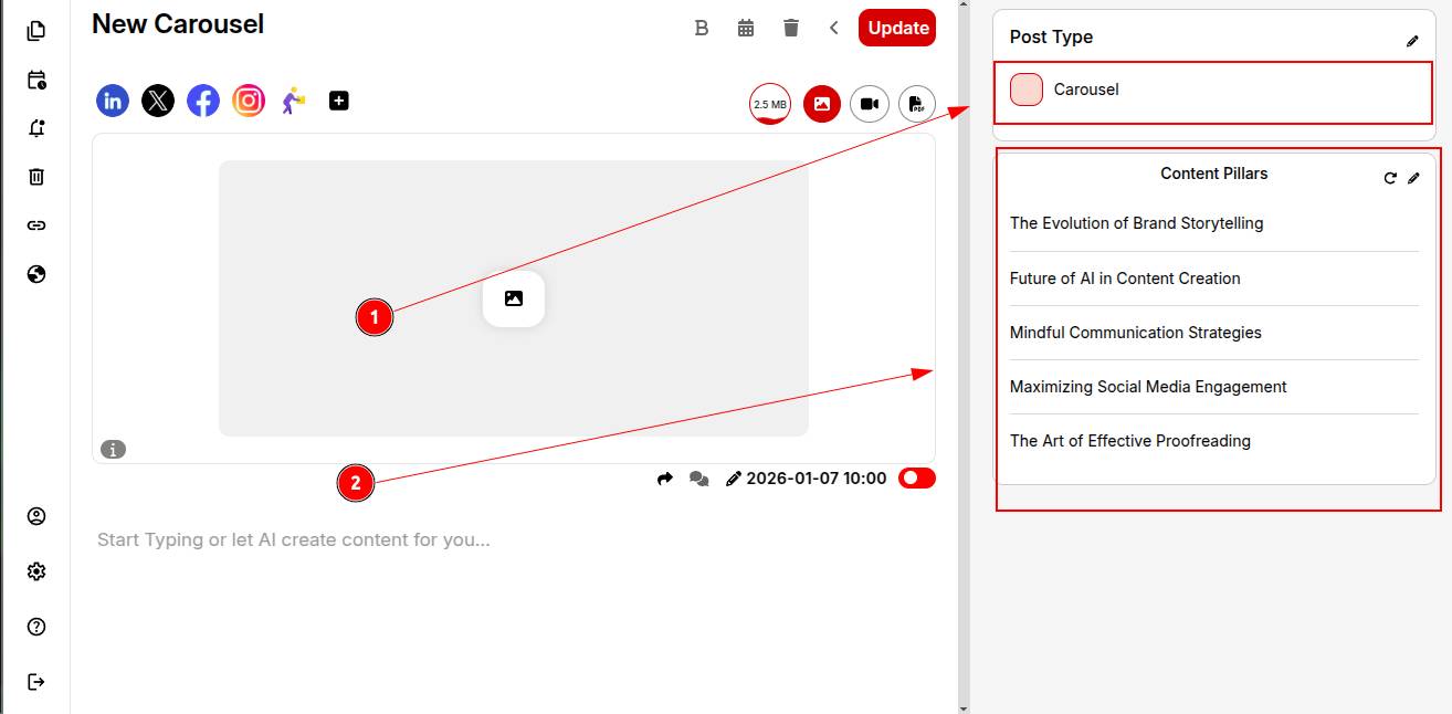 Step 1: Open your campaign Planner and select carausals from the post creation dropdown.