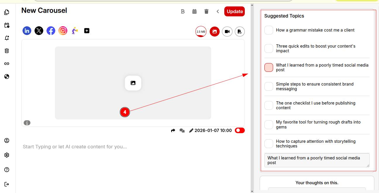Step 4: Review AI-powered trending topic suggestions and pick one that fits your audience and purpose.