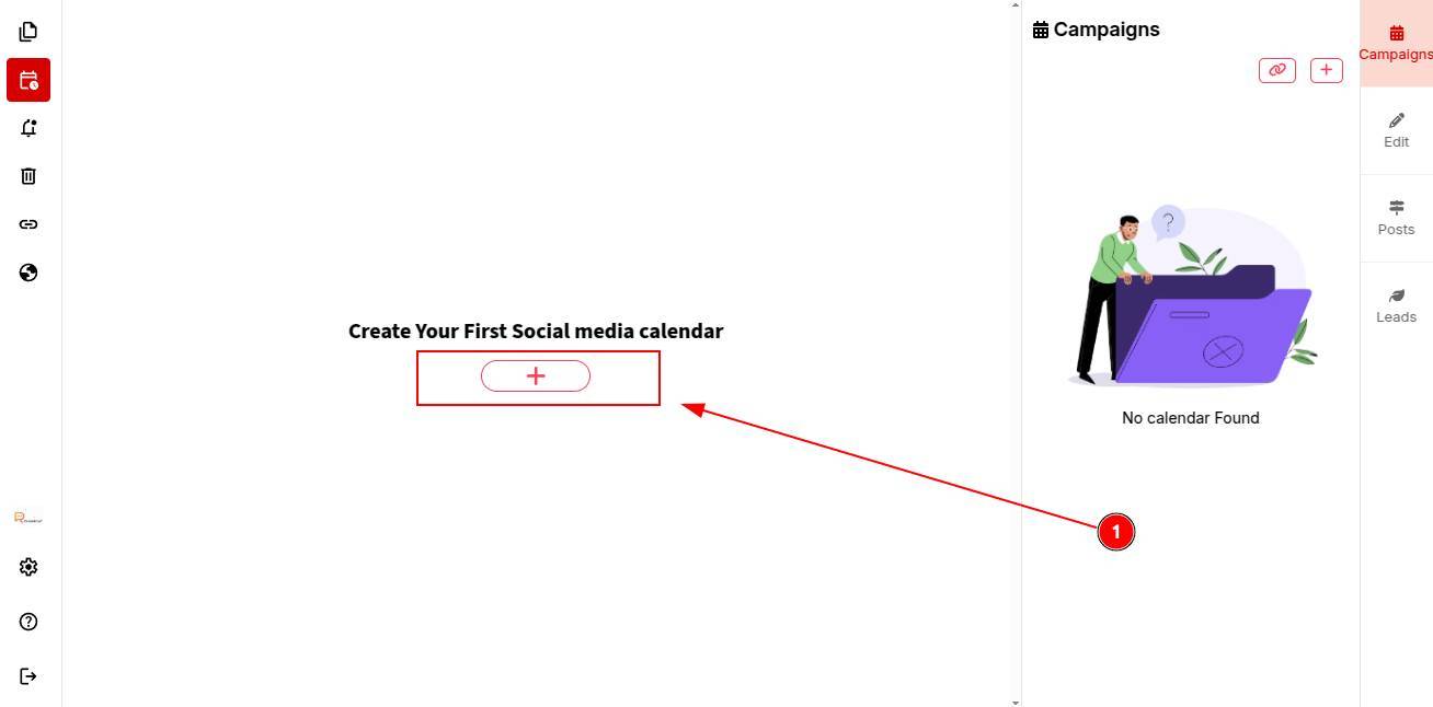 Step 1: Once your account is set up!. Click the “+” icon to get start with content calender.