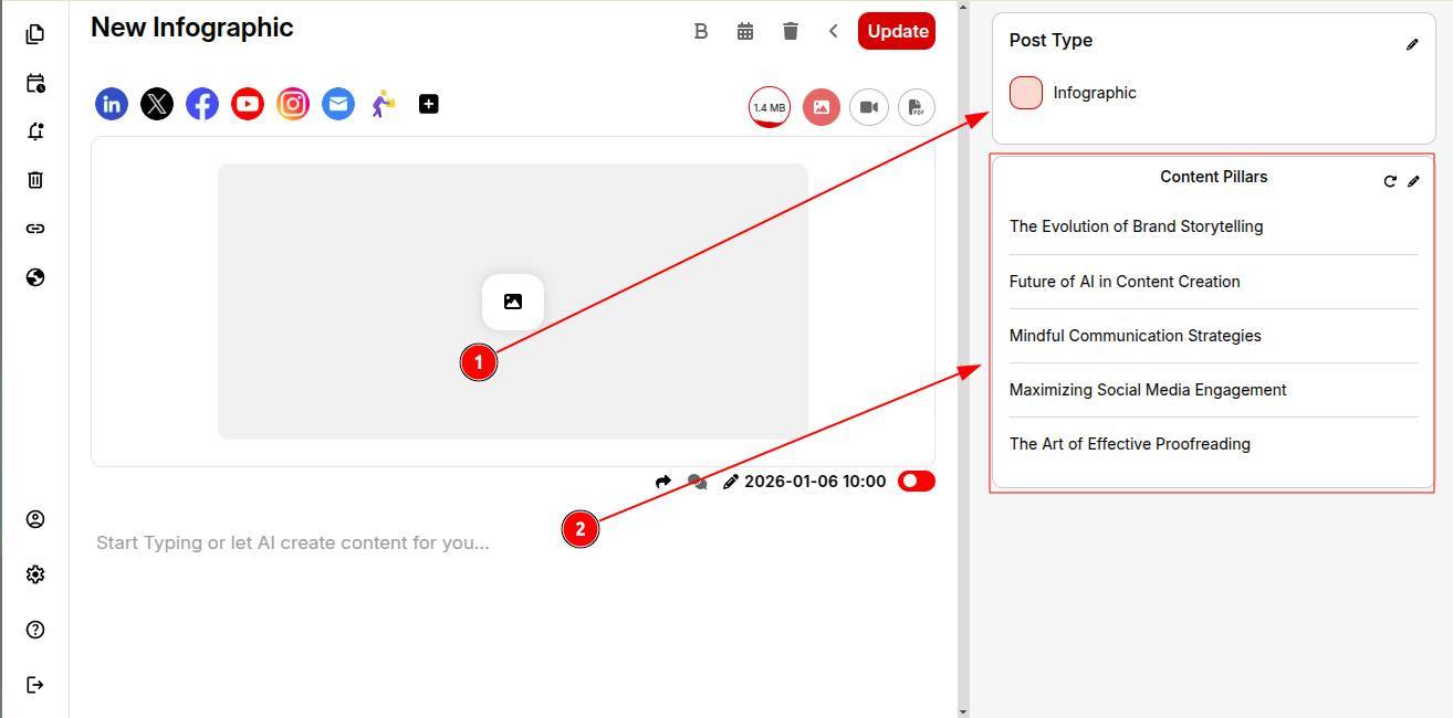 Step 1: Open your campaign Planner and select Infographics from the post creation dropdown.