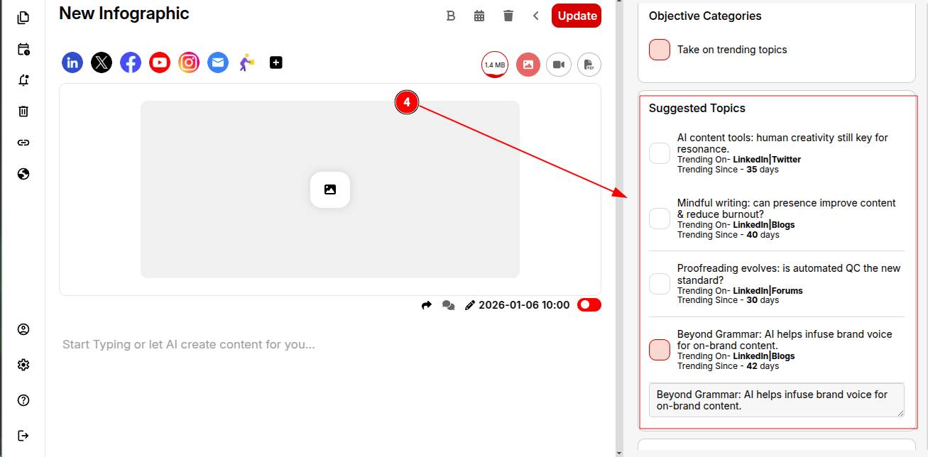 Step 4: Review AI-powered trending topic suggestions and pick one that fits your audience and purpose.