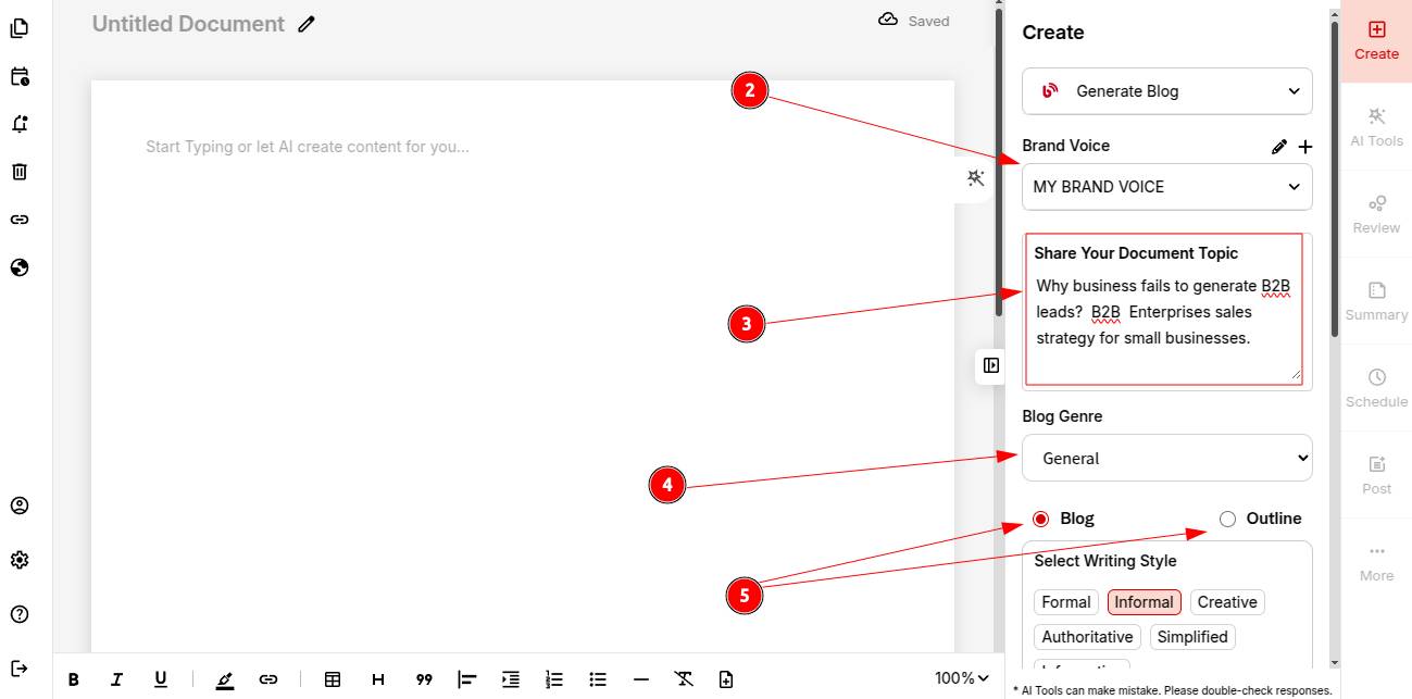 Step 5: Decide what you want to generate: blog or blog Outline.
