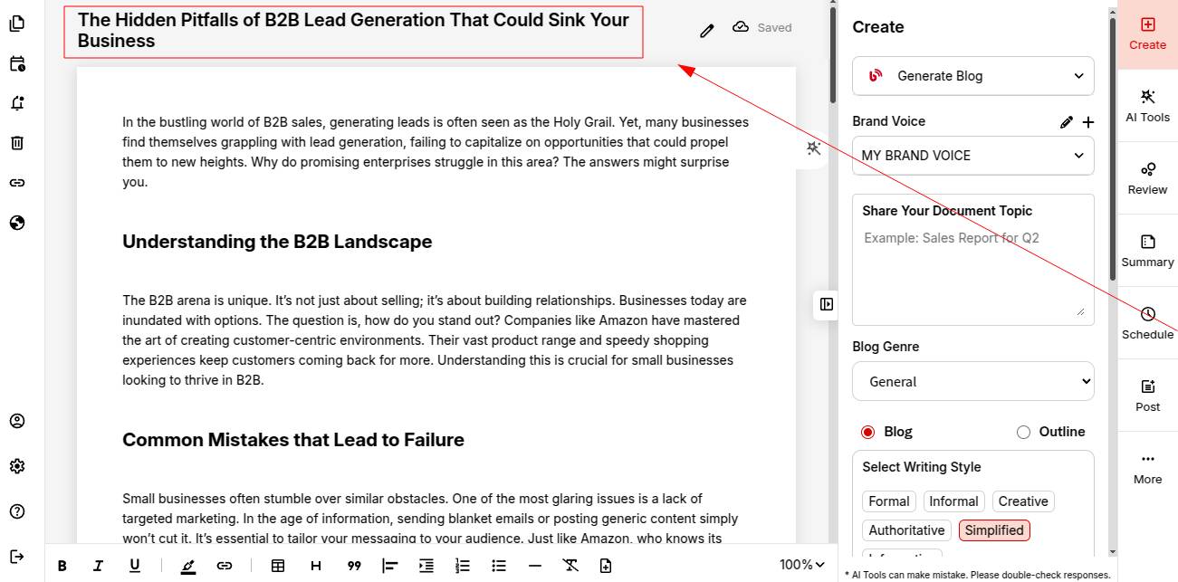 Your Complete Document is now Ready! Do a quick review or make any final tweaks. Once done, you can schedule your blog for publishing.