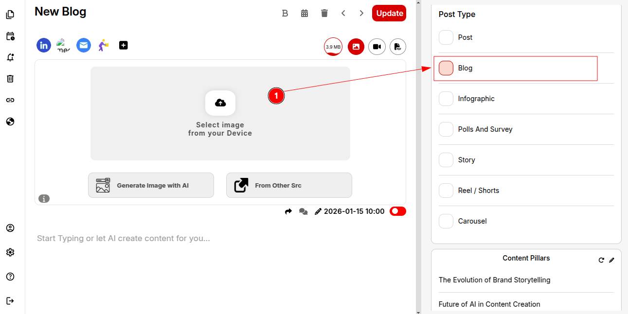 Step 1: Open your campaign Planner and select Blog from the post creation dropdown.