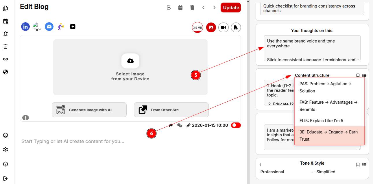Step 8: Set your tone of voice and writing style for consistency across all posts.