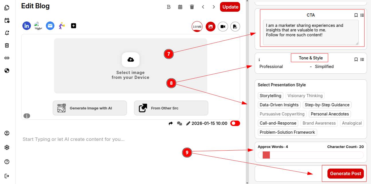 Step 9: Define your desired word count and click Generate Post.
