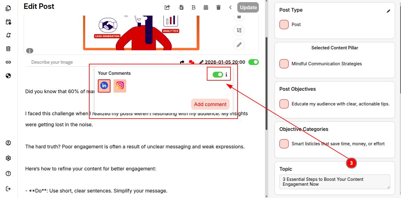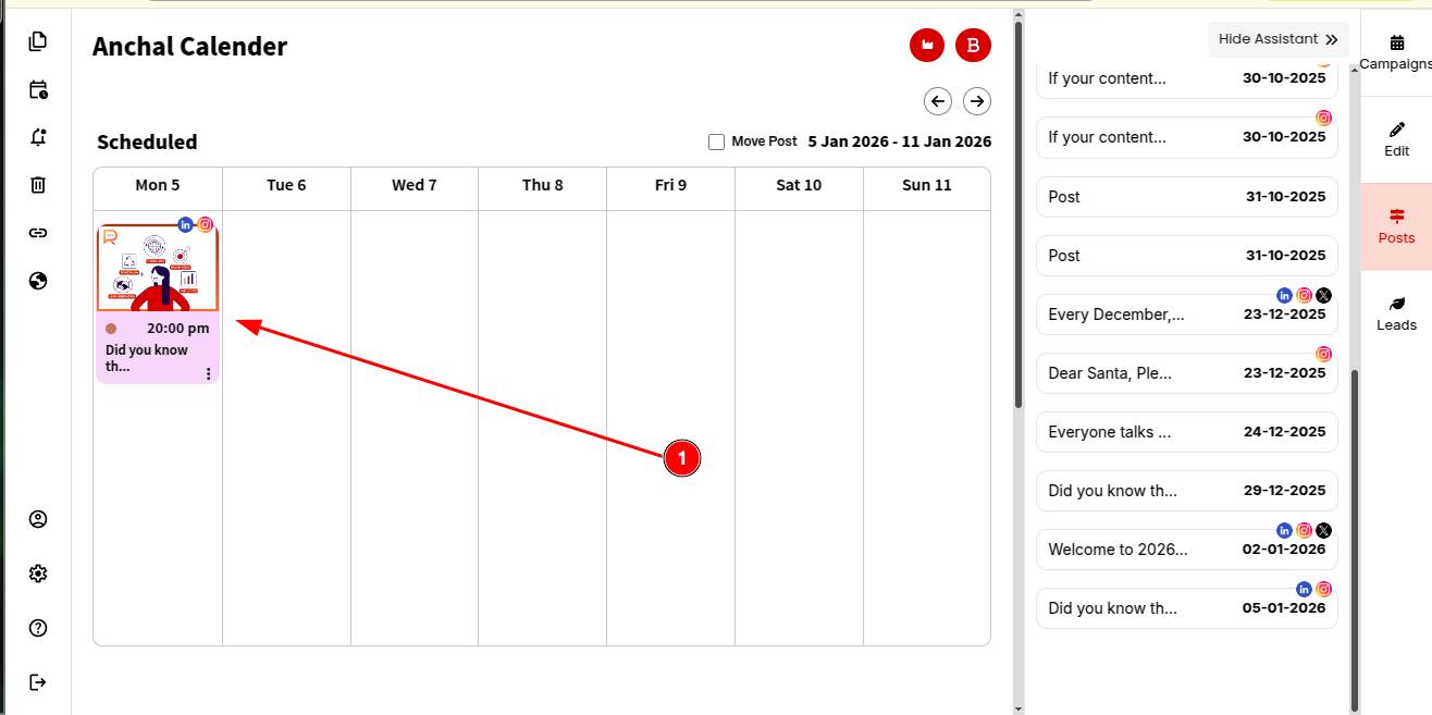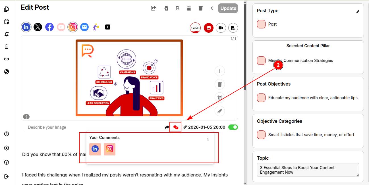 STEP 1: Open your post in the ContentCraft Calendar.