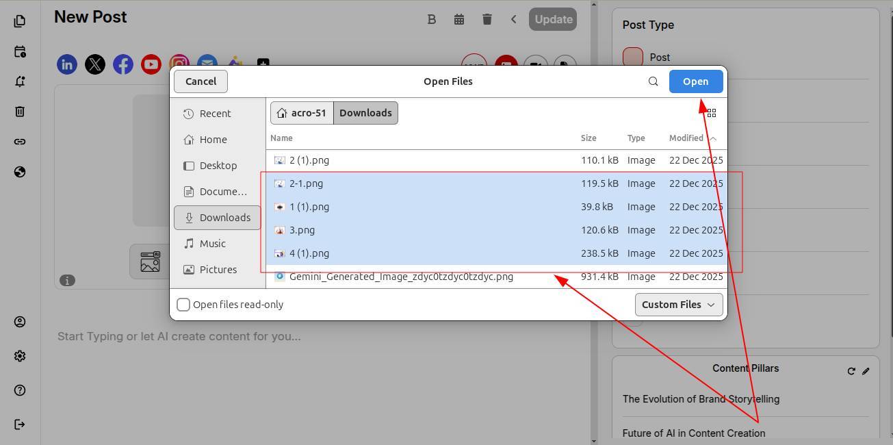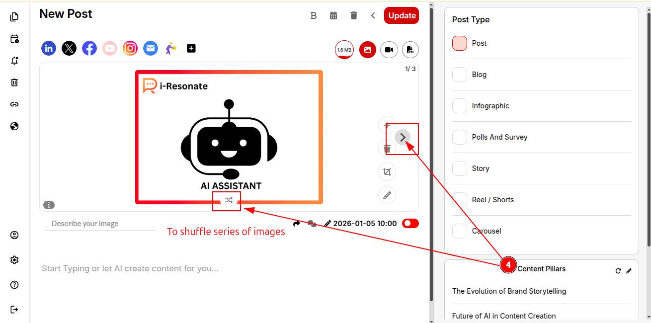 ContentCraft makes image planning easy by letting you upload and organize multiple images directly within your content calendar.