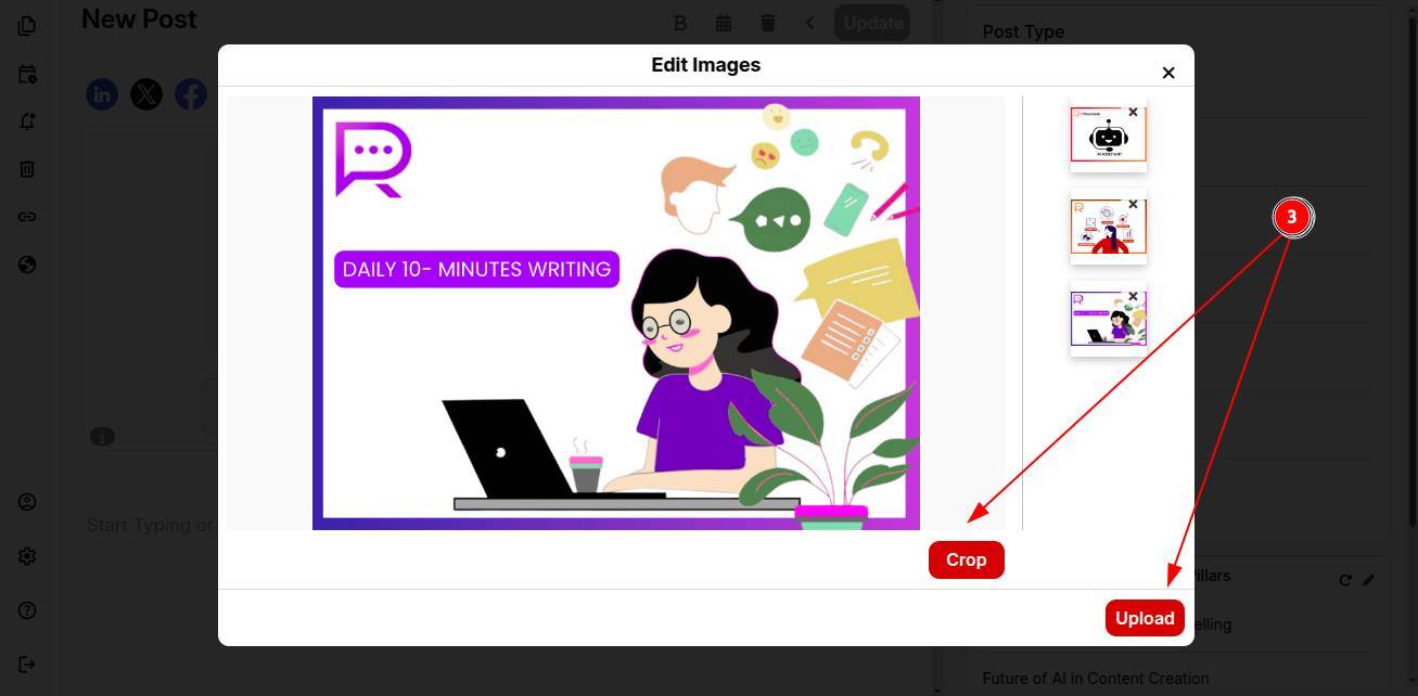 STEP 3: Crop the images if needed, then upload them to the ContentCraft media library.