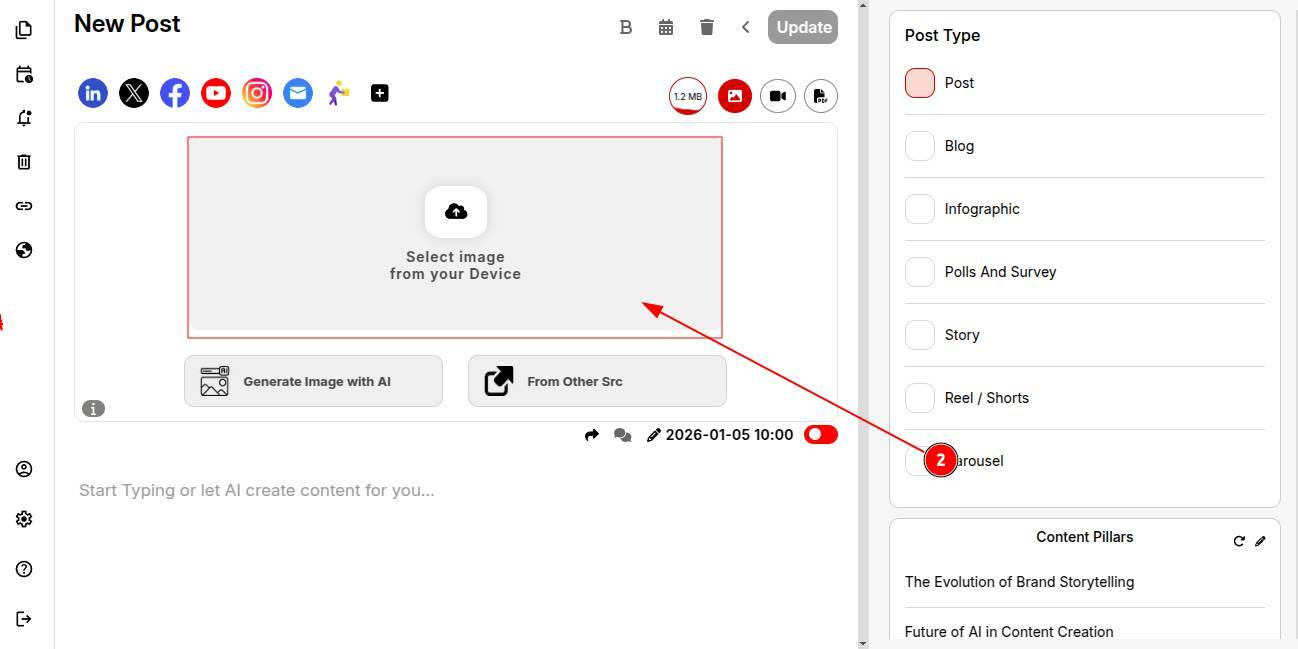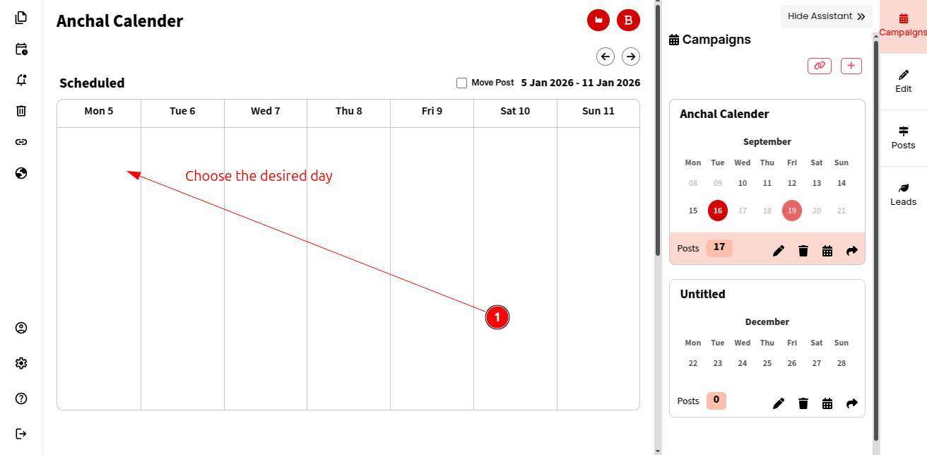 STEP 1: Open your Content Calendar and choose the desired day where you want to plan your content.