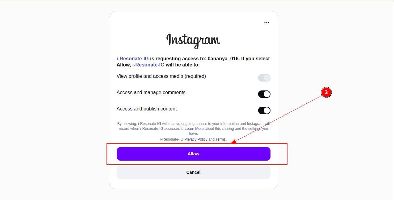 Step 3: If your browser already has your Instagram account logged in, a pop-up will appear asking you to allow access to ContentCraft. Click Allow to continue.