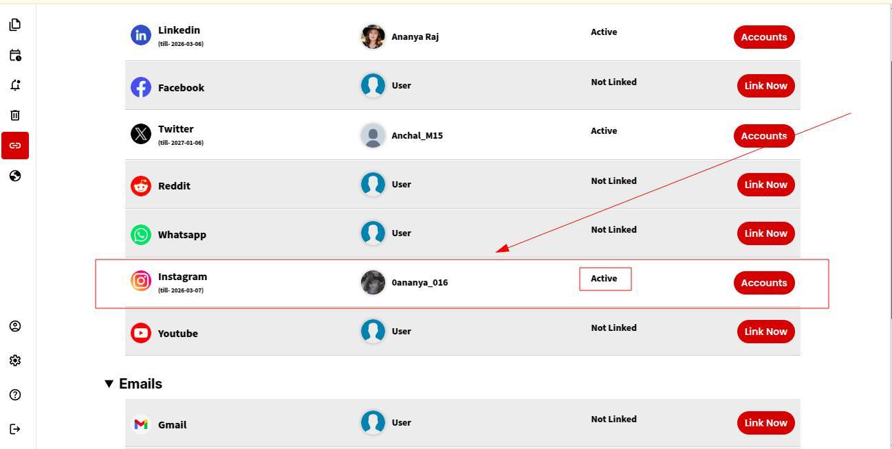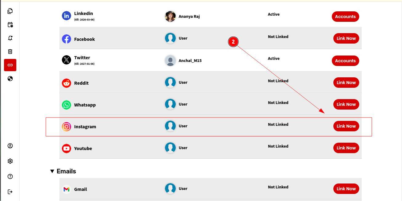 Step 2: Choose Instagram from the list of available platforms and click “Link Now.”
