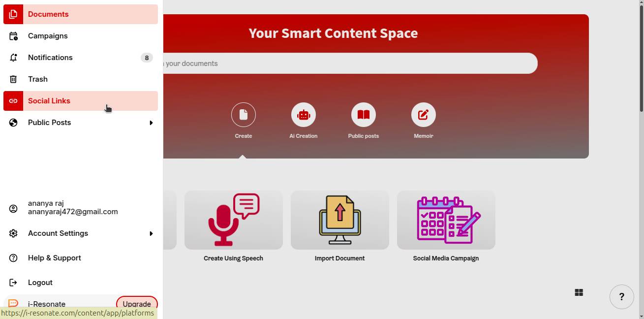 Step 1: Click on “Social Links” from the left navigation bar on the ContentCraft dashboard.