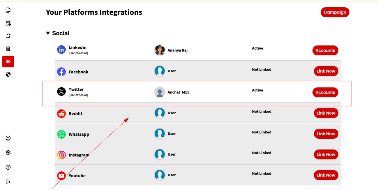 Note: You can link multiple Twitter accounts with ContentCraft if you manage twwets across different accounts or teams.