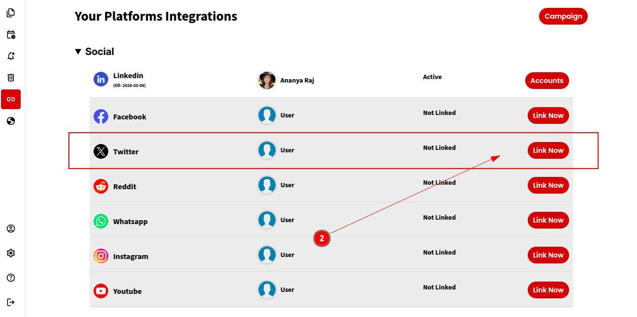 Step 2: Choose Twitter from the list of available platforms and click “Link Now.”