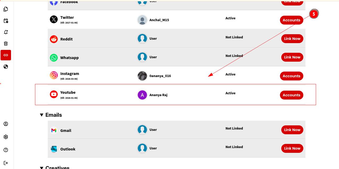 Step 2: Choose YouTube from the list of available platforms and click “Link Now.”