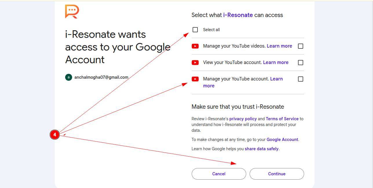 Step 3: Select the Google account associated with the YouTube channel you want to add.