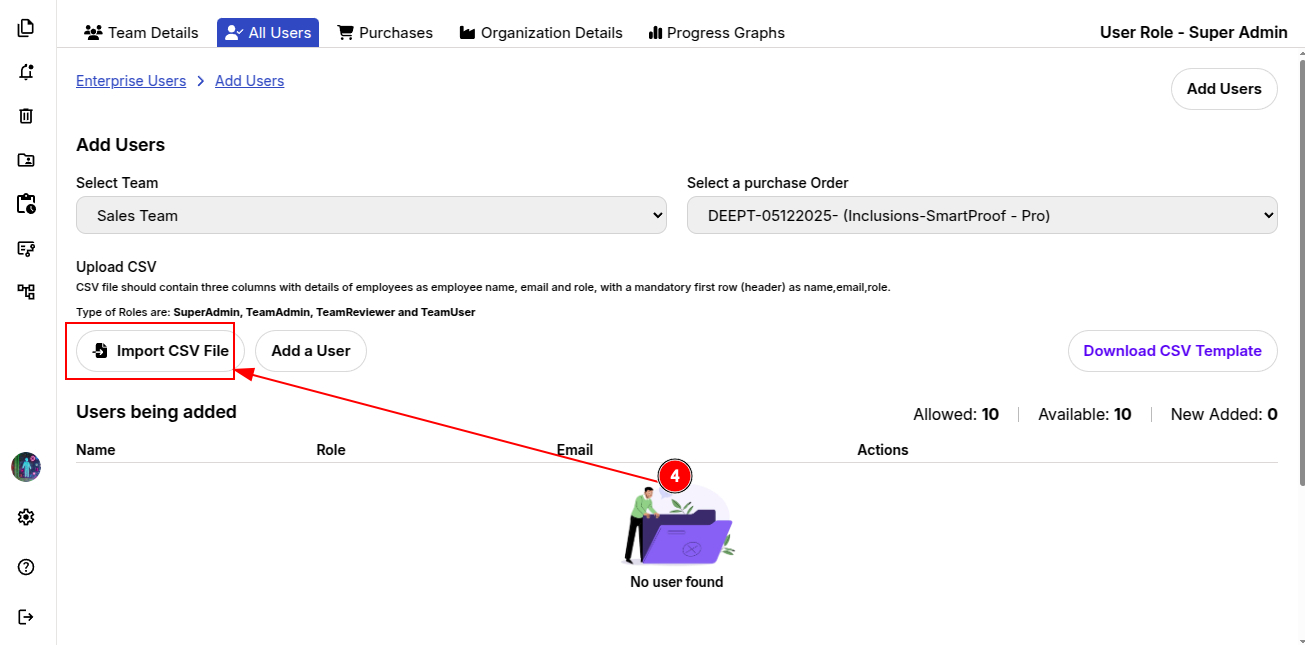 STEP 4: Import users via a CSV file (containing Name, Email ID's and their Role).