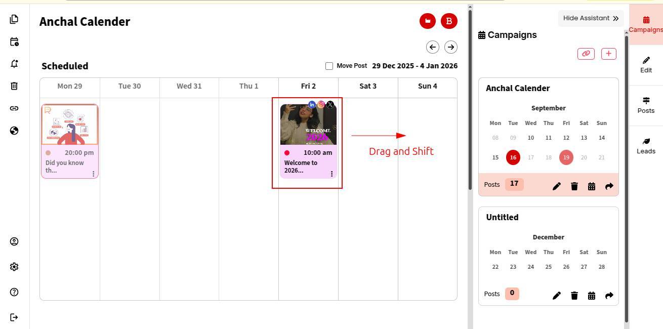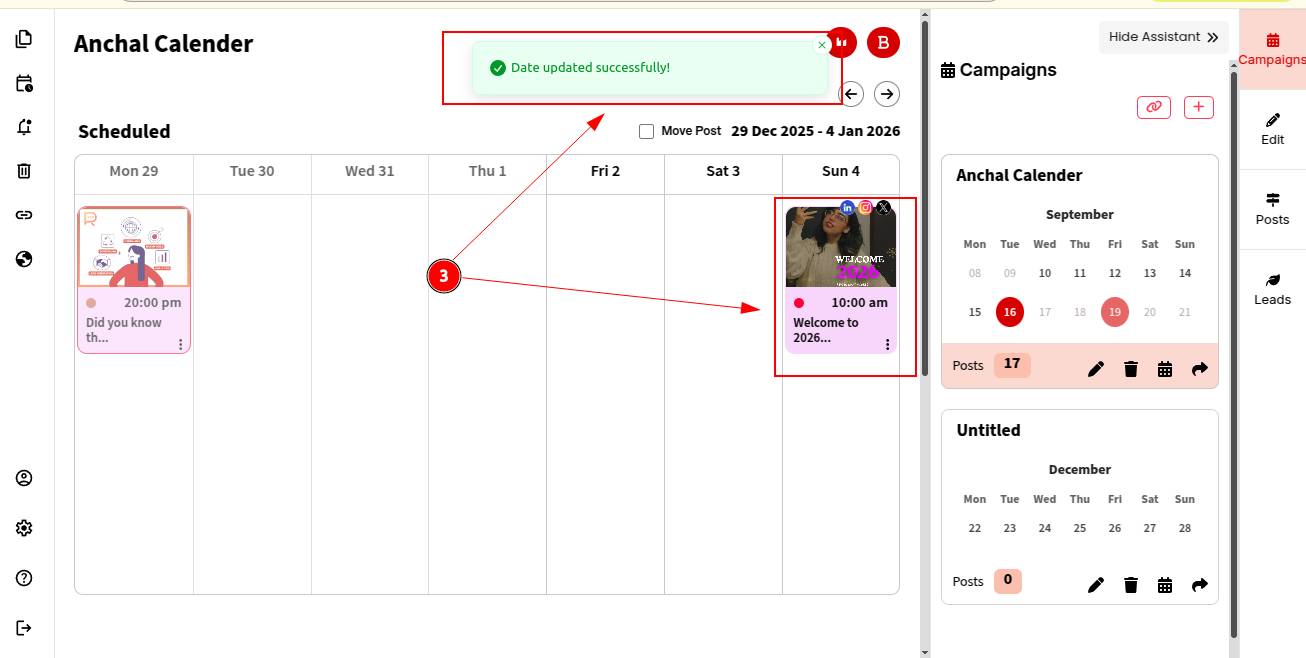 STEP 3: Once dropped, the post’s scheduled date will update automatically, while the time remains unchanged.