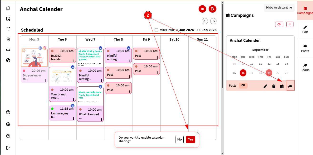 Content calendar sharing allows you to give others access to view and review your planned content before it goes live.