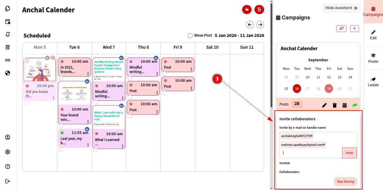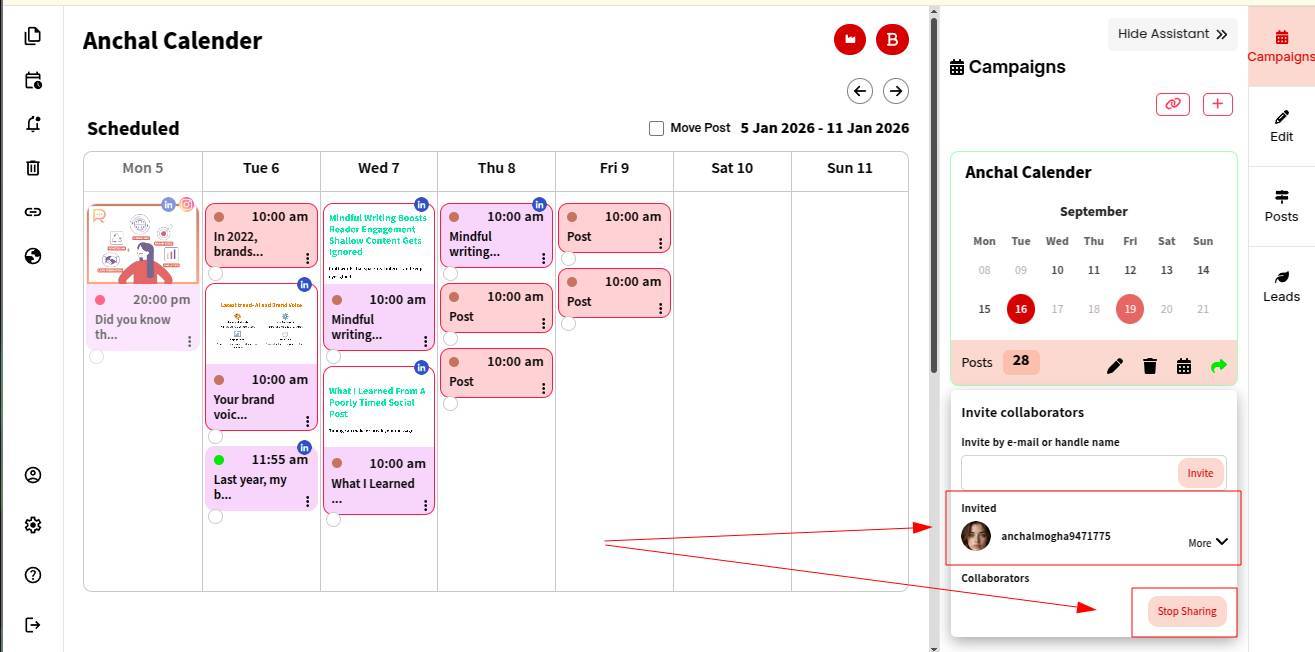 The users are now successfully invited to view and review your content calendar. You can stop sharing access anytime you want.
