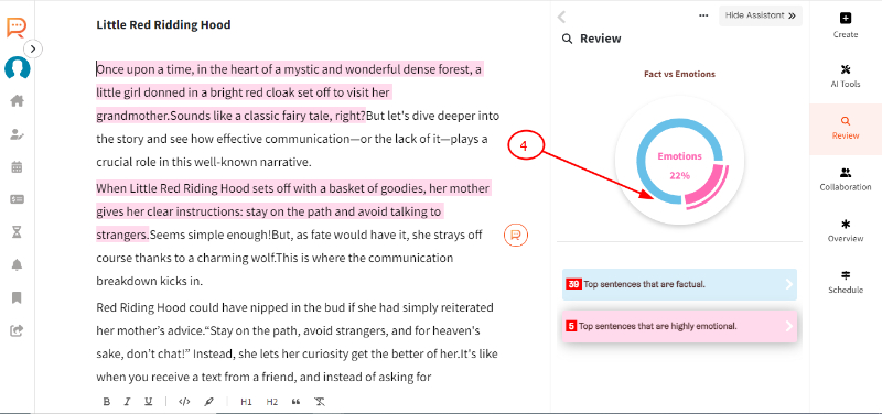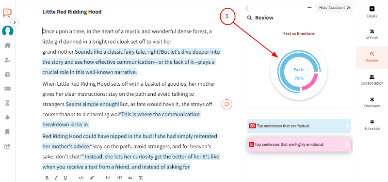 Find the perfect balance between facts and emotions in your writing with SmartProof. Analyze the factual-to-emotional ratio of your content to create messages that are both credible and engaging.
