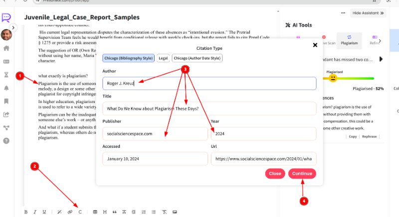 With SmartProof, you can easily check for plagiarism and generate accurate citations in just a few clicks. The AI-powered plagiarism checker scans your content across multiple online sources, detecting duplicate or paraphrased text, while the built-in citation generator helps you reference those sources correctly