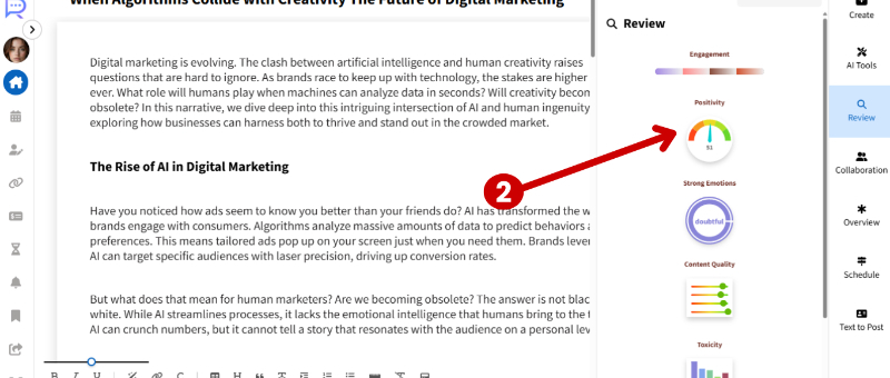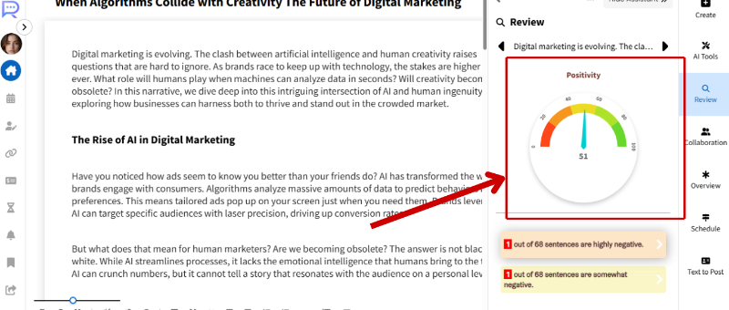 STEP 3: Your content’s positivity score will be displayed, helping you understand how upbeat or neutral your writing is.