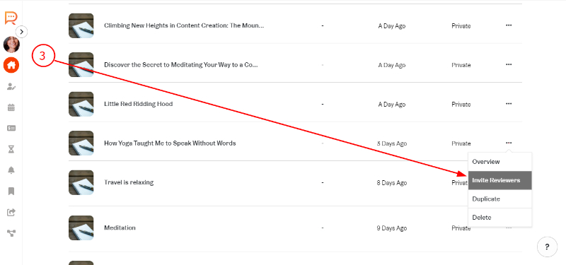 3. Select the "Invite Reviewer" option from the dropdown menu.