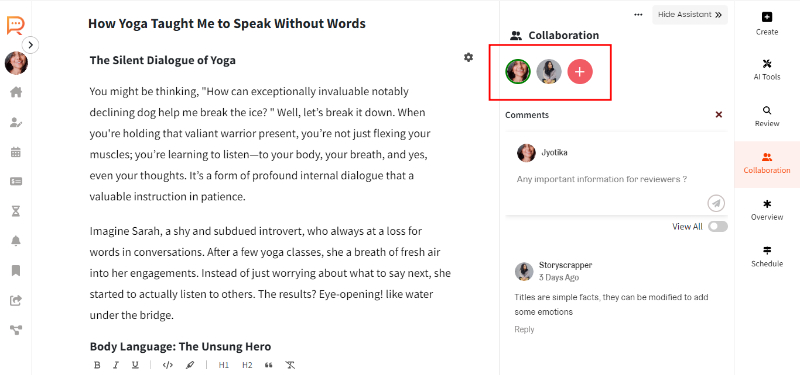5. After the other authors accept the request, click on the collaboration icon to see the comments made by other authors.