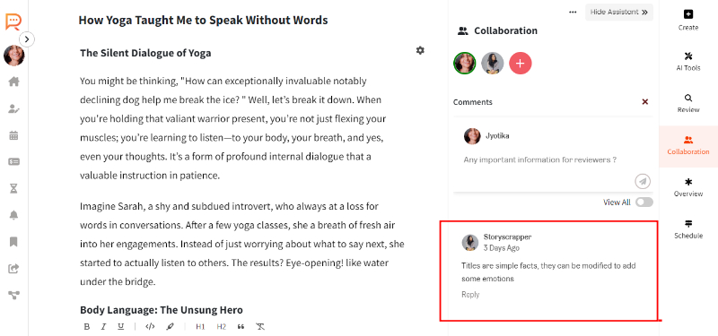 Working on content as a team has never been easier. SmartProof lets multiple authors co-create, edit, and refine content in real-time, ensuring smooth collaboration, consistent style, and faster content production — all in one centralized platform.
