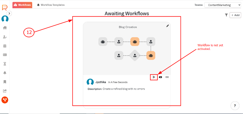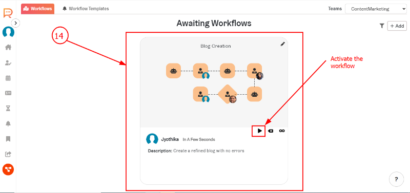 13. When done assigning tasks to the team mates, Activate the workflow.