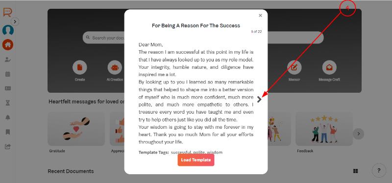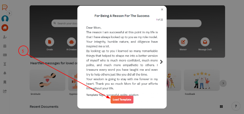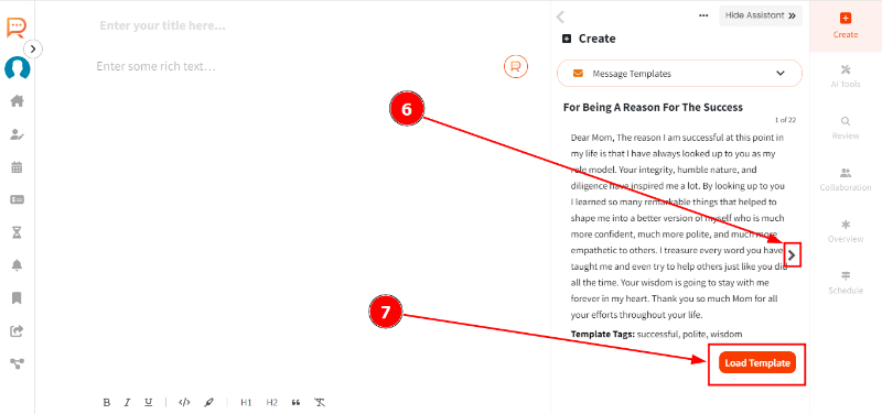 Step 6: .Select any message from the templates and click on 'Load Template'.