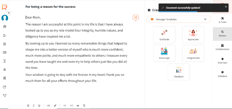 With SmartProof, you can effortlessly send personalized messages for any occasion — professional or personal. Using ready-made templates, expressing your thoughts has never been easier.