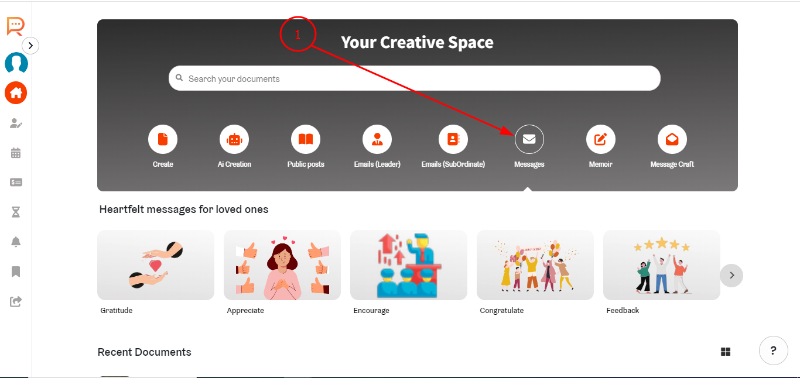 - Click on the "Messages" icon on Home page.