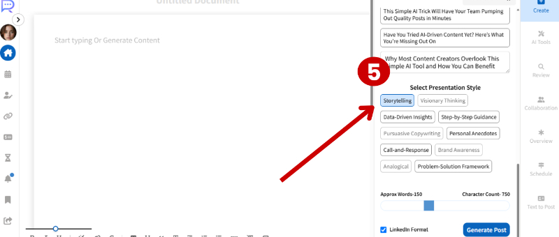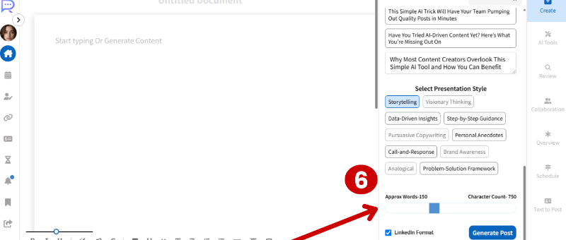 STEP-6 Choose your character count for the post, then click on “Generate Post.”