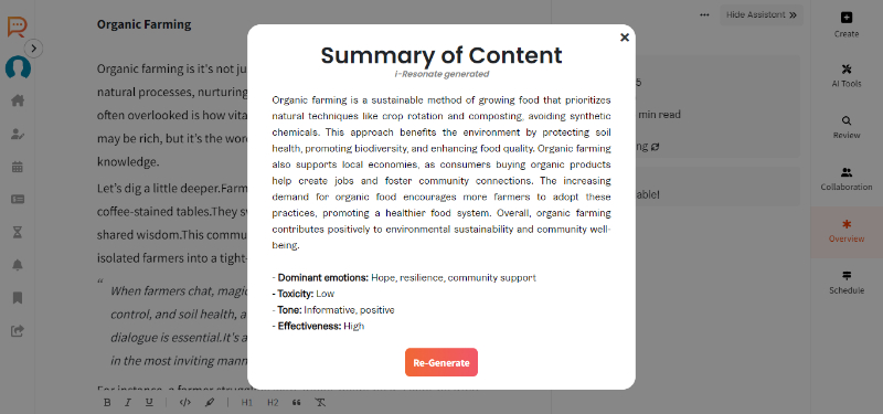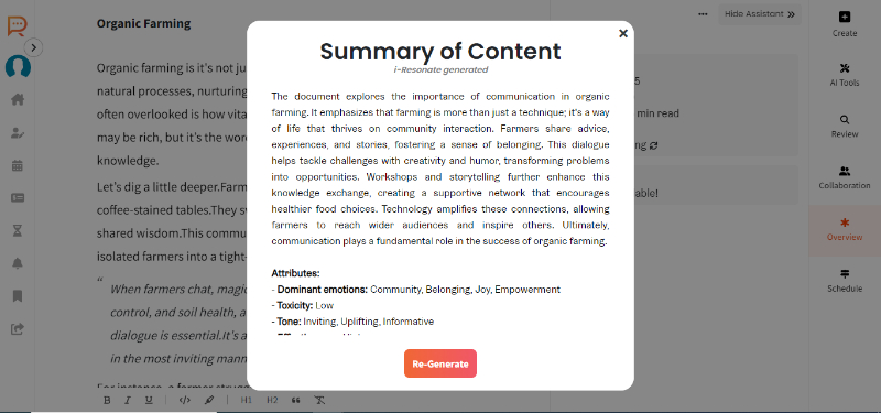 You can also Re-generate summary by clicking on 'Re-Generate' button.