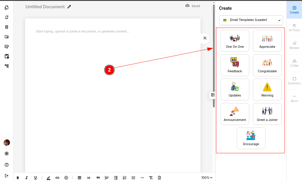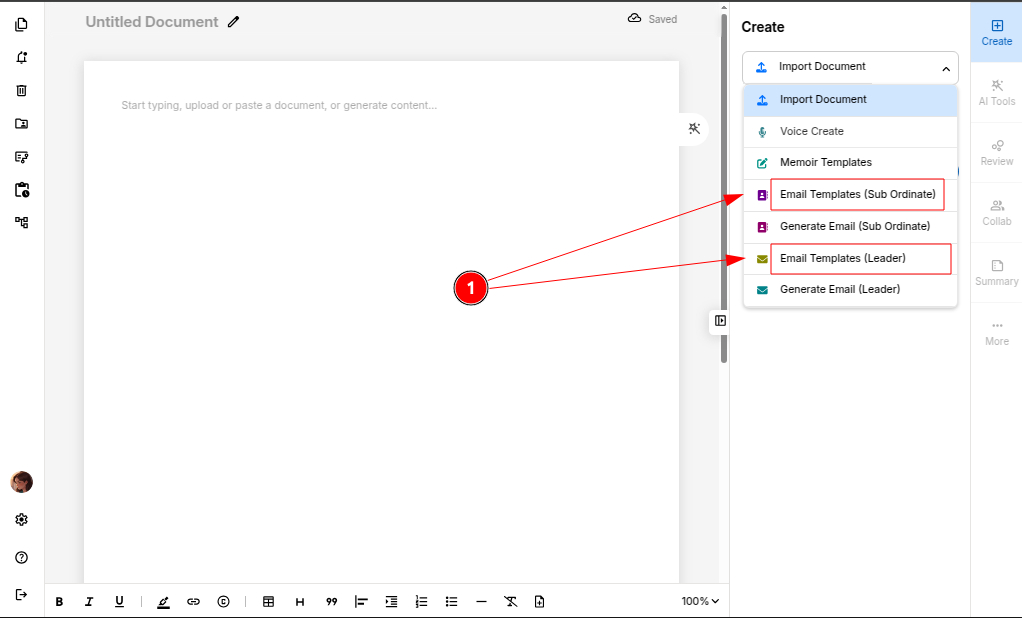 Step 1: Open a blank document and select the "Email Templates" (Leader or Subordinate) from the drop down option based on your requirement.