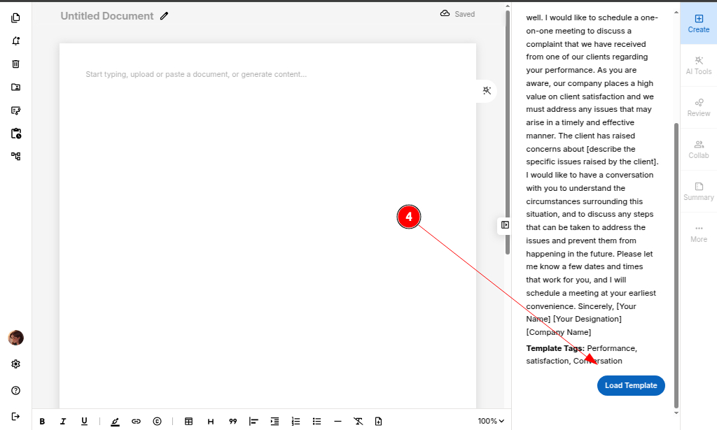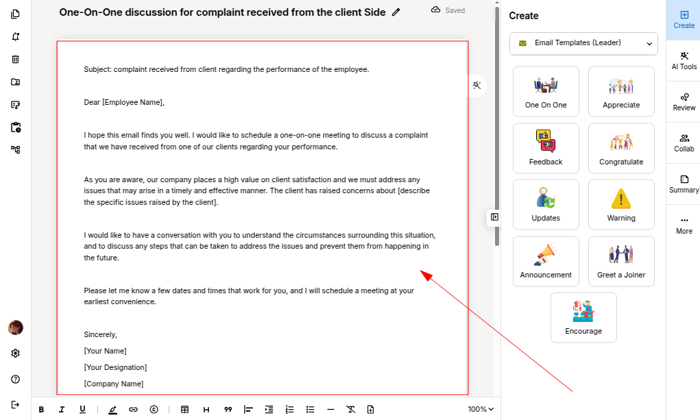 Once your email template is loaded, you can use AI tools to refine your email while keeping your message authentic and effective.