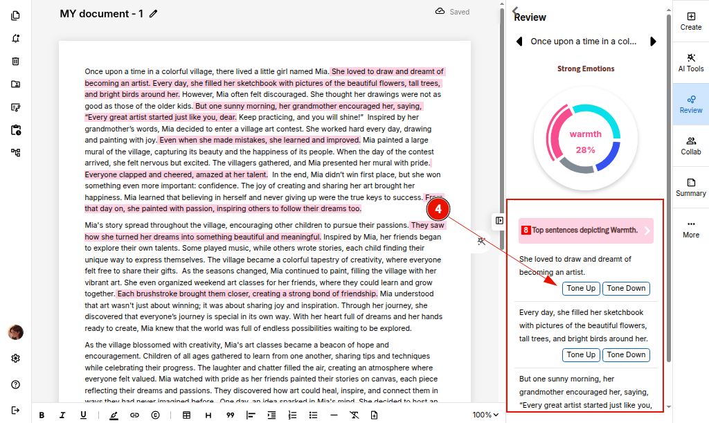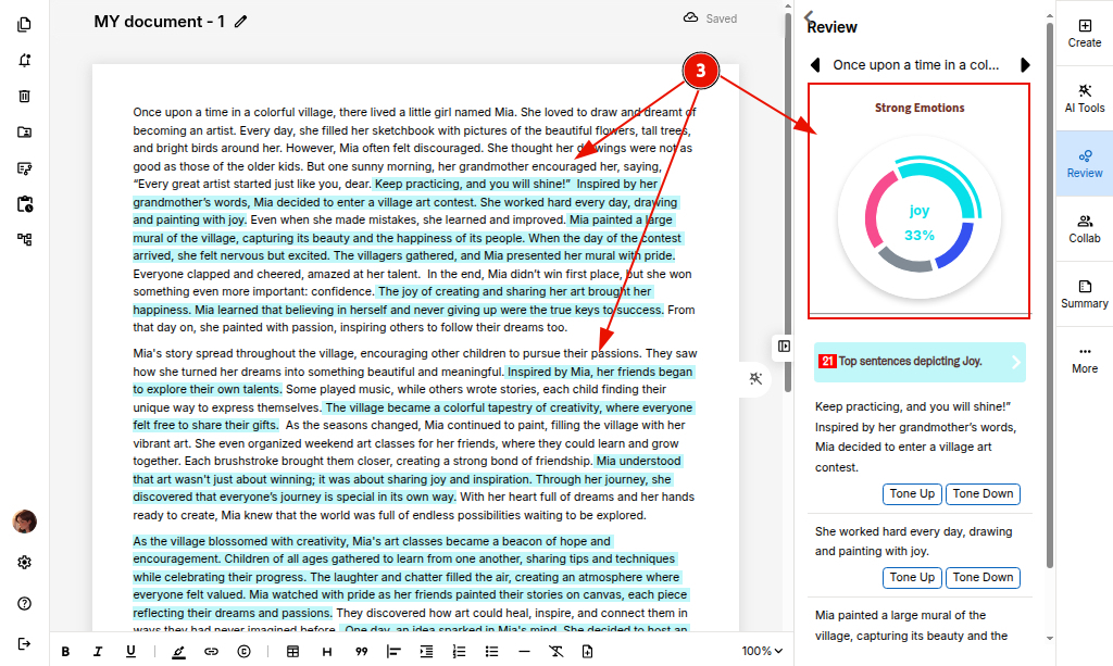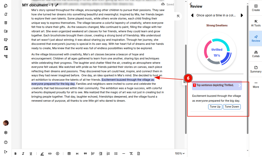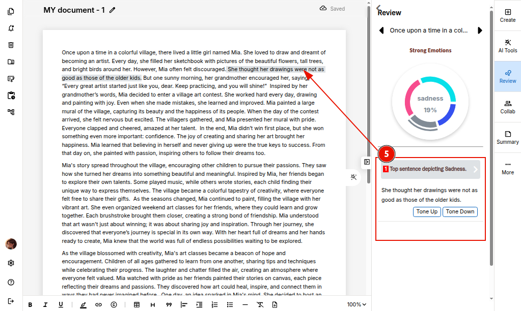 STEP 4: You can hover over different sections to see which emotions you may want to Tone Up or Tone Down based on the purpose of your document.