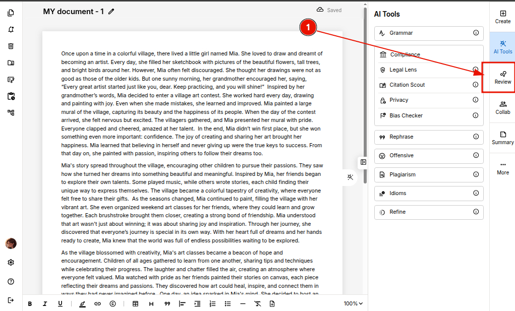 STEP 1. Open your document in the editor and click 'Review' on the right panel.
