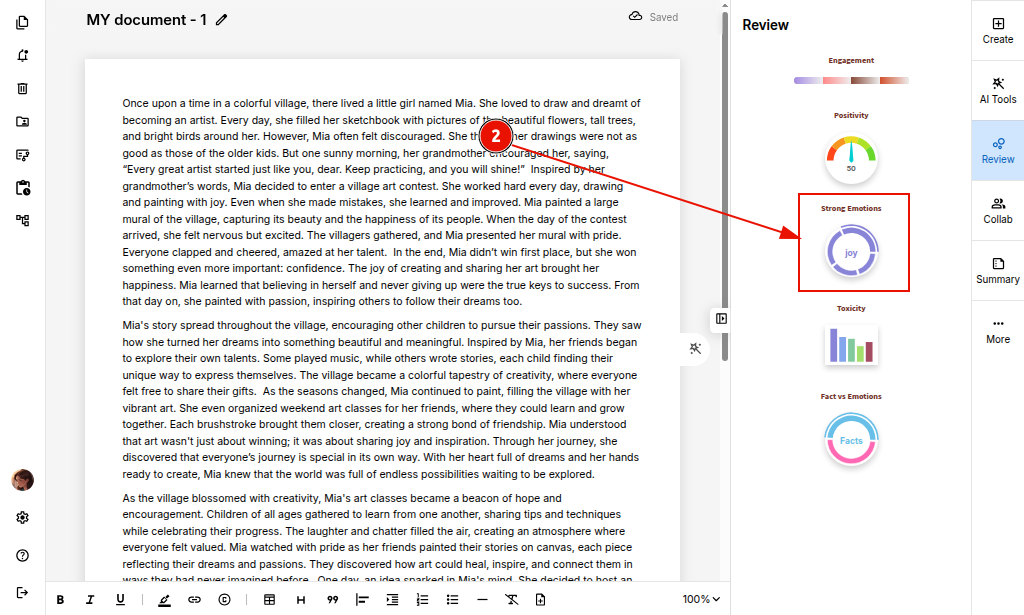 STEP 2. Click on the 'Strong Emotions' graph to analyze the emotional factors detected in your content.