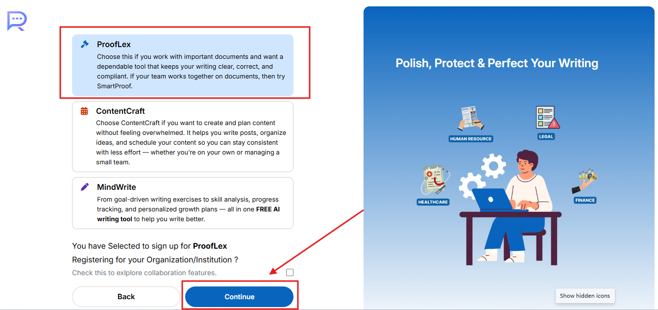 Signing up for ProofLex is quick and takes less than a minute. Follow the steps below to create your account and begin your ProofLex journey: