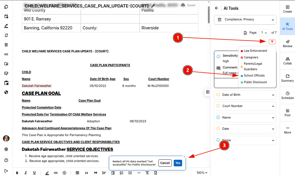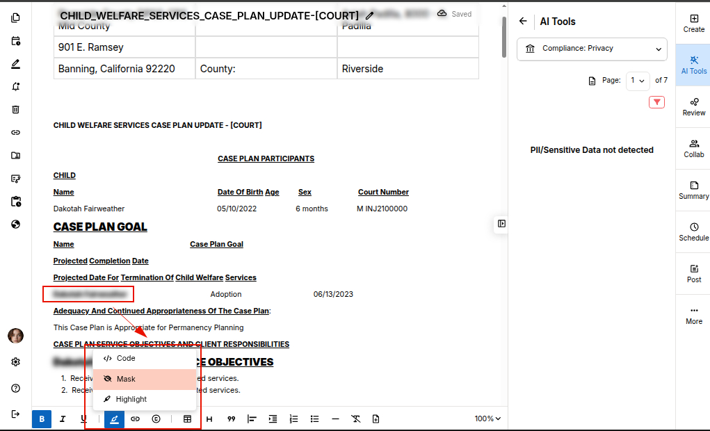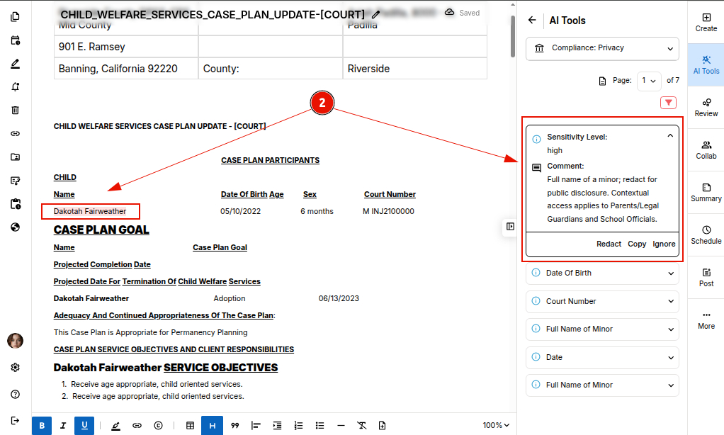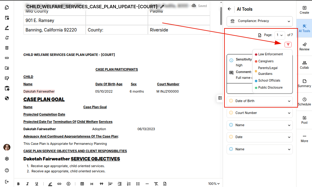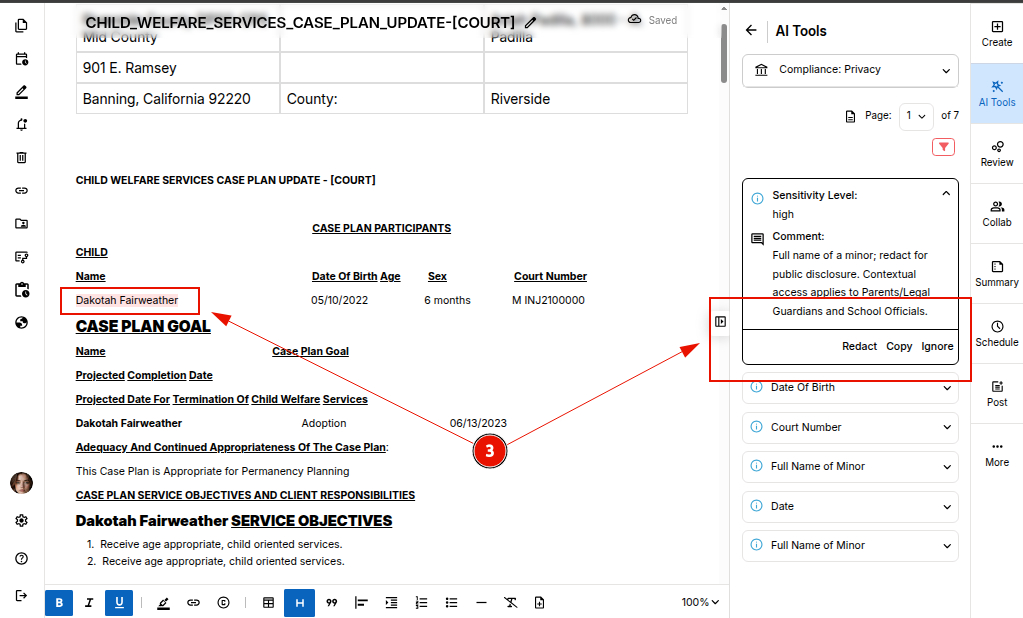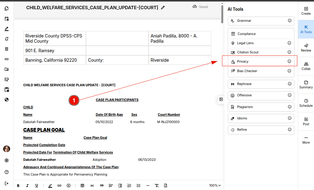 STEP 1: Open your document in the editor and select "Privacy" tool under the compliance AI tools.