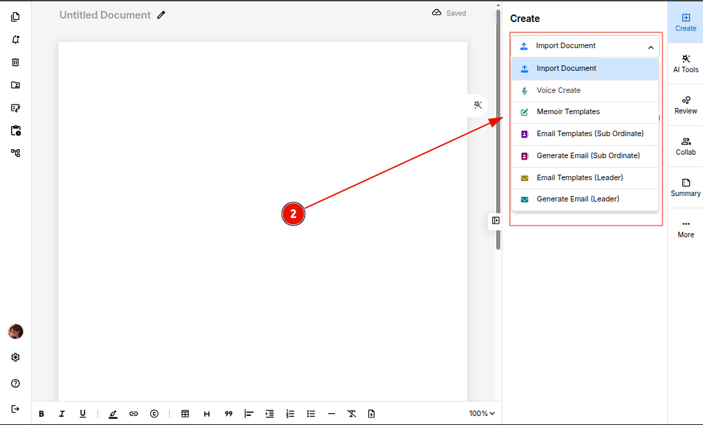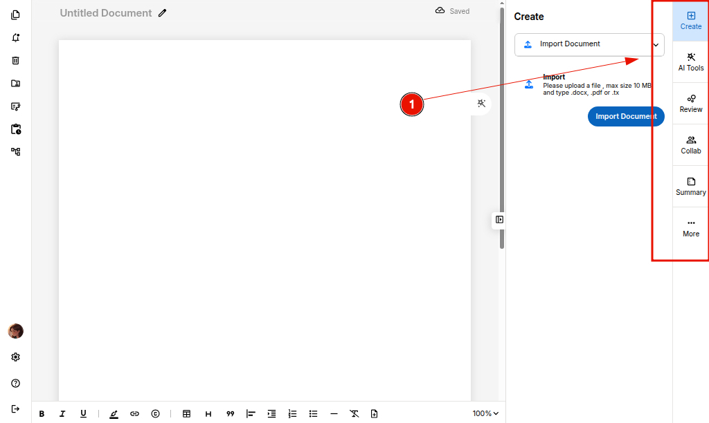 Import Document – Upload an existing file and continue editing seamlessly.