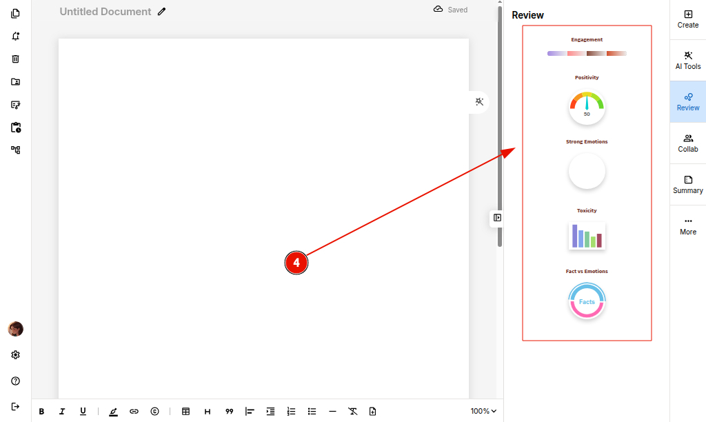 The Review panel helps you analyze the tone and emotional quality of your document.