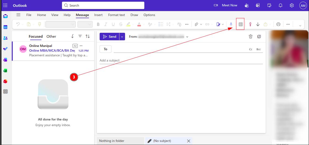 STEP 3: Once you're logged in, open a new email. In the top menu of the compose window, look for the Apps icon, it looks similar to the image shown below.